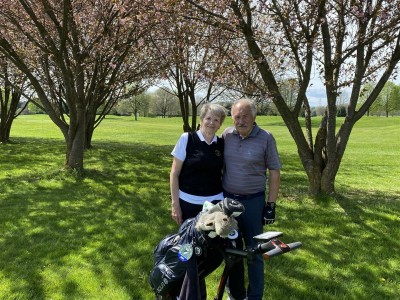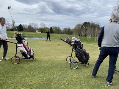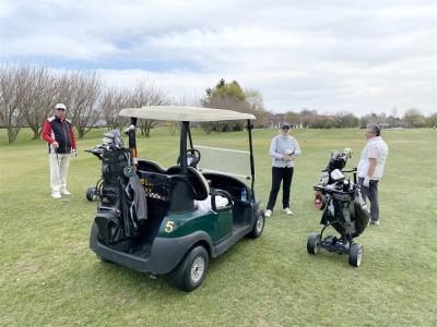 4. April, Lustige Runde mit Thomas. 10. April, auch eine lustige Runde mit Lore und Gerhard. 12. April, wieder einmal mit Renate und Klaus, leider keine Sonne. 21. April und 1. Mai, schöne lustige Runden mit Traude und Toni. 23. April und 3. Mai, Renate und Klaus mit Sonne. 9. Mai Muttertag am Südkurd mit Gerti und Seppi. Siegi ein fescher Marshal Ein schönes Foto von Klaus!